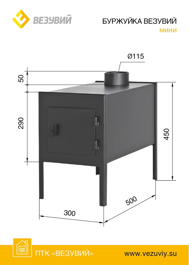 Везувий Везувий «Мини» – стальная отопительная дровяная печь типа «буржуйка» со стальной дверцей.