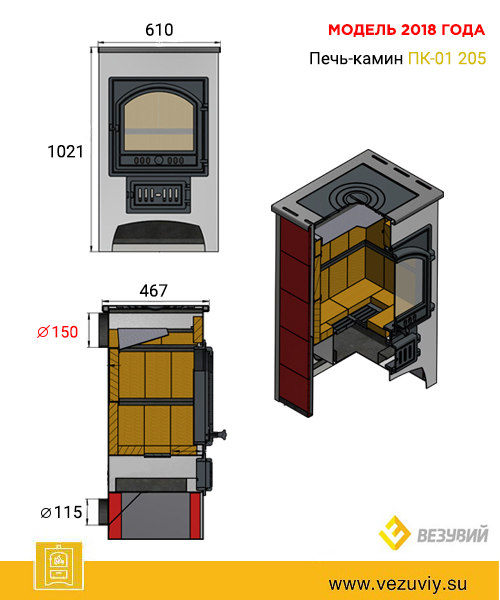 Описание печи Везувий ПК-01(205) с плитой бежевый, 12 кВт
