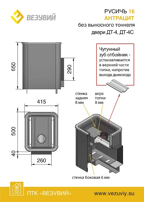 Описание печи Везувий Русичъ Антрацит 16 (ДТ-4С) б/в
