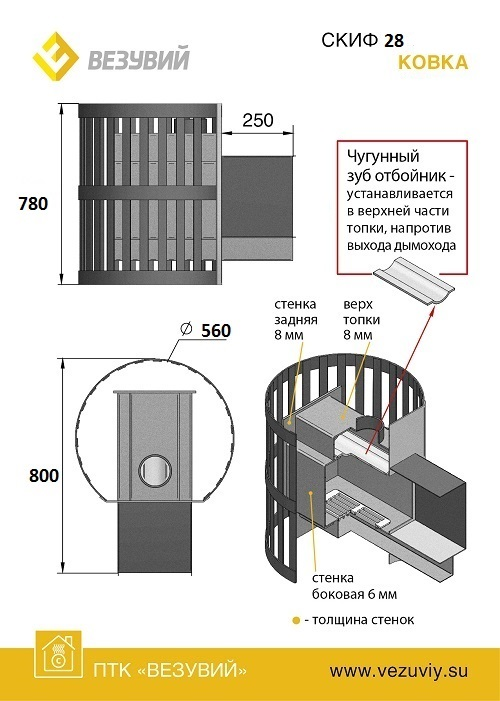 Характеристики печи Везувий Скиф ковка 28 (205)