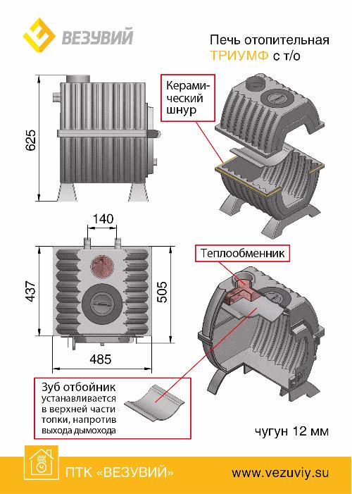 Характеристики печи Везувий Триумф 180 т/о
