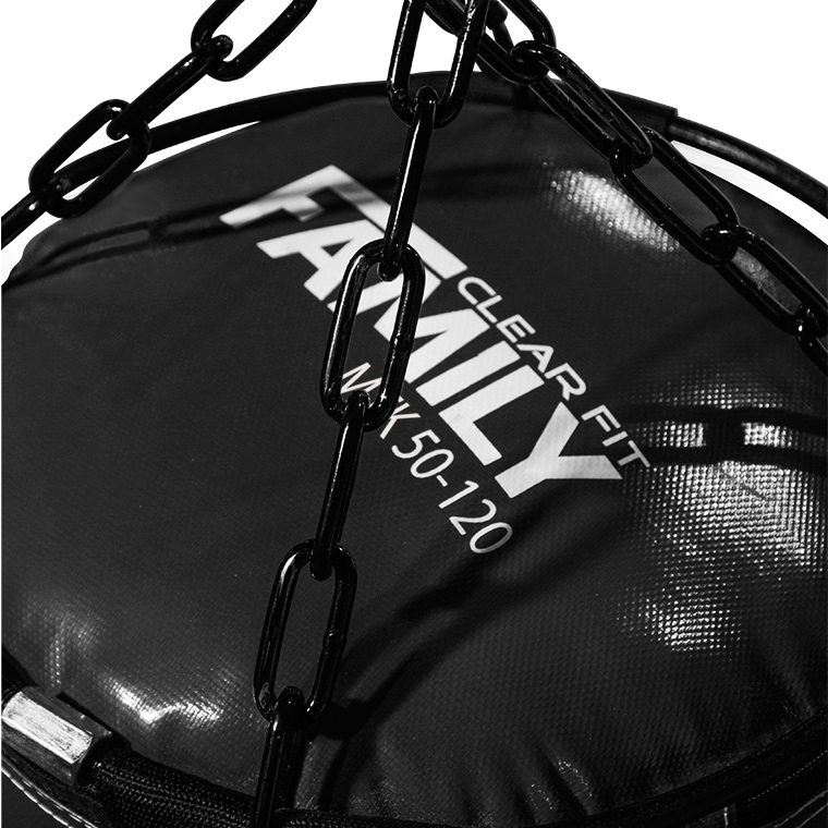 Прошитый металлический подвес из кольца по диаметру мешка и система цепей образуют единое изделие, обеспечивая высокую прочность и надежность. Подходит для разных видов единоборств.