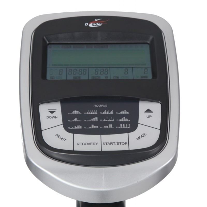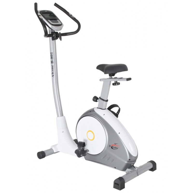 DENDER ALVINE B-801 - современный велоэргометр для комфортных домашних тренировок. За плавность хода отвечает трехкомпонентный педальный узел с подшипниками SKF повышенной прочности и маховик весом 10 кг. Посадка вертикальная. Сидение повышенной комфортности с возможностью регулировки по вертикали и горизонтали. Есть регулировка руля. Тренировочный пакет состоит из 20 программ тренировок. Контроль за пульсом осуществляется при помощи сенсорных датчиков. Регулировка нагрузки электронная. Диапазон регулировки - 16 уровней, для более точной установки нагрузки есть возможность регулировать нагрузку в Ваттах от 30-350 Вт. Максимальный вес пользователя не должен превышать 150 кг.