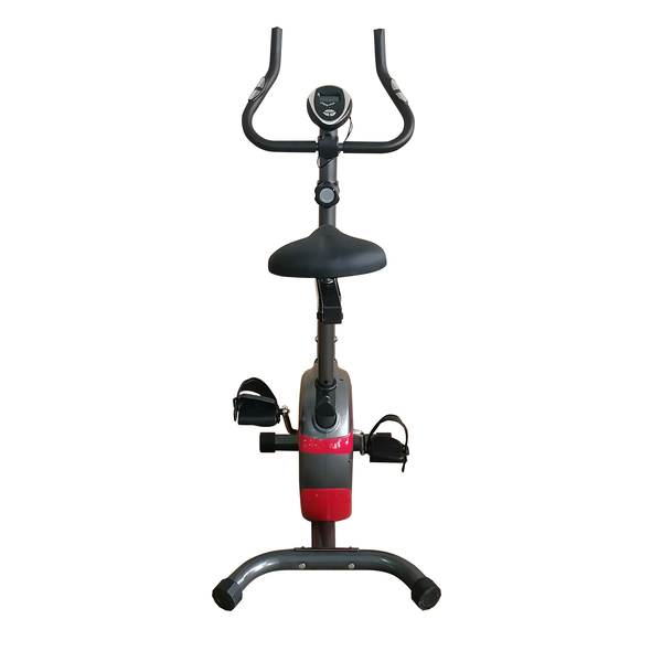 Компактный велотренажер с вертикальной посадкой и комфортным сидением.