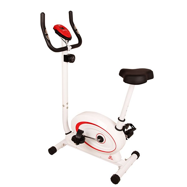 Вертикальный механический велотренажер. Модель для домашнего использования. 8 положений регулировки механической системы нагружения позволяют подобрать оптимальную нагрузку для ежедневной тренировки. Консоль с LCD-экраном компьютера (питание от батареек). Датчики пульса расположены на руле. Большое сиденье для людей разного возраста, с регулировкой по высоте. Большие педали с нескользящим покрытием и регулируемыми ремнями.