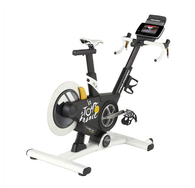 Уникальный тренировочный велотренажер Pro-Form Tour De France Centenial модель 2014 - 2015 позволяет осуществлять эффективные тренировки в домашних условиях точно так же, как если бы Вы ехали по улице. Этот замечательный велотренажер не только имитирует езду на скоростном велосипеде, но и помогает развивать и поддерживать на должном уровне необходимый тонус в мышцах, совершенствовать свою физическую форму и тренировать сердечнососудистую и дыхательную системы. Высочайшее качество деталей, надежная и устойчивая стальная рама выдерживают многократные и интенсивные нагрузки до 160 килограмм. Электромагнитная система нагружения SMR™ и тяжелый сбалансированный маховик весом 18 килограмм обеспечивают тихий и плавный ход. Переключение передач осуществляется кнопками, расположенными на руле. Спортивная гоночная посадка позволяет задействовать в работе максимальное количество мышц, обеспечивая тем самым возможность самым естественным образом сохранить и улучшить свое физическое состояние. Механизм свободного хода позволяет более точно имитировать езду на дорожном велосипеде. В модели Tour De France Centenial имеется возможность цифрового изменения угла наклона рамы в пределах от -20 до + 20%. Благодаря этому в процессе тренировки возможна имитация дорожных условий. Изменяя угол наклона, Вы изменяете не только нагрузку, но и положение своего тела, что полностью имитирует дорожные условия. Тренируйтесь, не выходя из дома. Кроме того на велотренажере данной модели внедрена интеллектуальная система, учитывающая сопротивление воздуха. Интеллектуальная система полностью имитирует езду на велосипеде по улице. После ввода параметров пользователя (вес, рост) система автоматически рассчитает точно такую же нагрузку, какую бы Вы получили во время езды по пересеченной местности, с учетом объема Вашего тела и сопротивления воздуха. Вы тренируетесь, не сходя со своего тренажера точно так же, как если бы Вы ехали по улице.