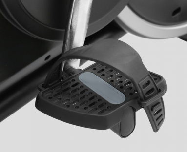 Педали обладают специальными прорезиненными ремешками, которые позволяют заниматься в открытой обуви и не пережимают лодыжку. Регулировка ремешков позволяет подогнать натяжение под любом размер ноги. Рифленая поверхность педалей обеспечивает уверенное сцепление с подошвой обуви при любых скоростях педалирования.