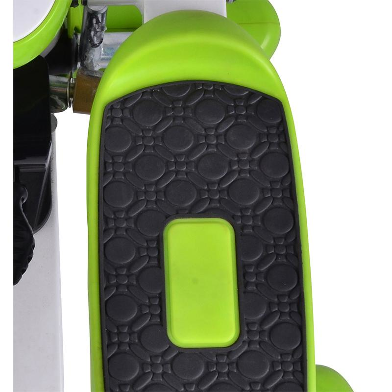 Мини-степпер прорабатывает и тонизирует ягодицы и мышцы ног. Позволяет выполнять упражнение вверх - вниз и поворотные упражнения из стороны в сторону. Режим меняется с помощью ручки между педалями.