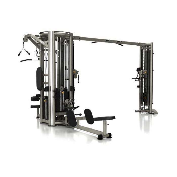 - 2 регулируемые по высоте тяги (с возможностью выполнения махов ногами). Вес каждого стека - 91 кг.
