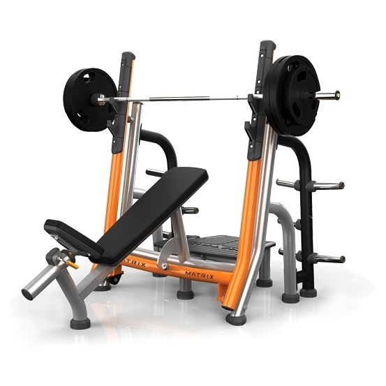 MATRIX MAGNUM A679 - ультрапрофессиональная скамья для жима с положительным наклоном. Снабжена доводчиком, позволяющим зафиксировать стартовое положение штанги в строго вертикальном положении. Конструкция из мощного профиля выдерживает работу с самыми тяжелыми весами. Рама окрашена в два слоя и покрыта лаком. Держатели для штанги на боковых стойках выполнены из формированного уретана.