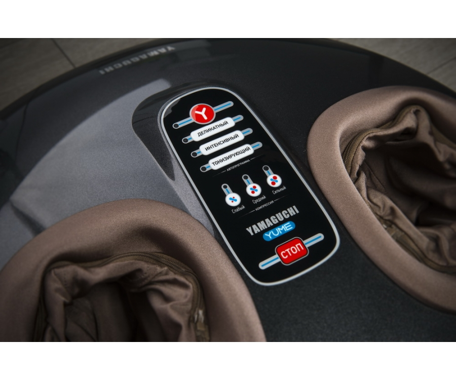 Это оборудование имеет улучшенную систему массажа стоп. Для работы 3 автоматических программ предусмотрены 24 воздушно-компрессионные подушки, а также 3 вида массажных роликов. Специальные подушки плотно фиксируют ногу, а ролики эффективно прорабатывают свод стопы. Массажёр для ног Yume идеально подойдёт людям, которые страдают от плоскостопия, венозного застоя крови в ногах, отёчности, ревматического артрита, гиподинамии, неправильной работы кишечника.