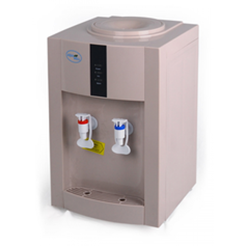 Экономичный настольный кулер без функции охлождения воды. Есть только нагрев и подача воды комнатной температуры. Бежевый оттенок придает изысканность данной модели, черная вставка из матового стекла подчеркивает строгость и элегантность. Прост и удобен в эксплуатации.