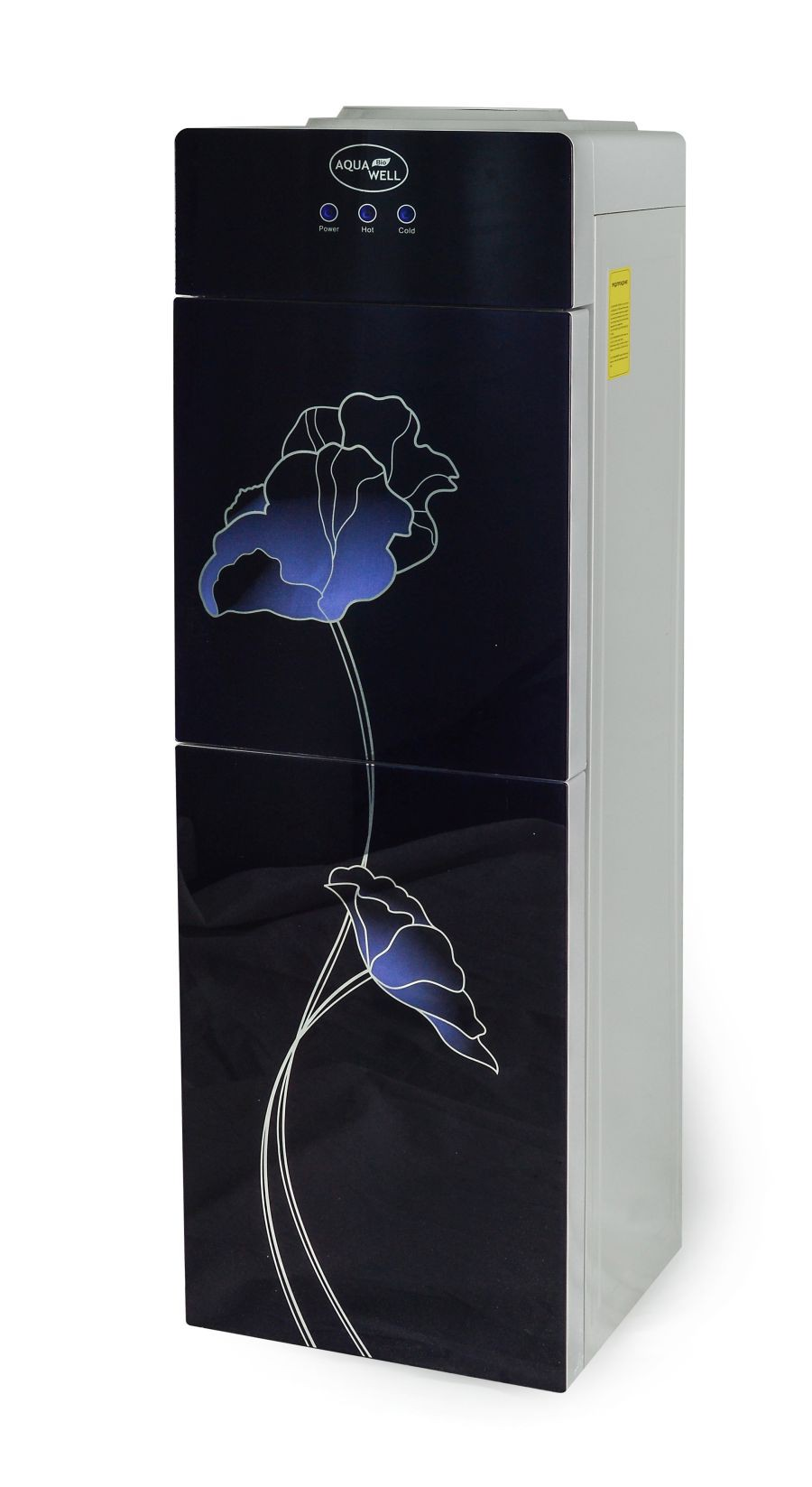 Кулер с верхней загрузкой бутыли и электронной системой охлаждения прост и удобен в эксплуатации, смотрится стильно и элегантно. Краны закрыты стеклянной панелью с рисунком. Удачное сочетание цена/качество.