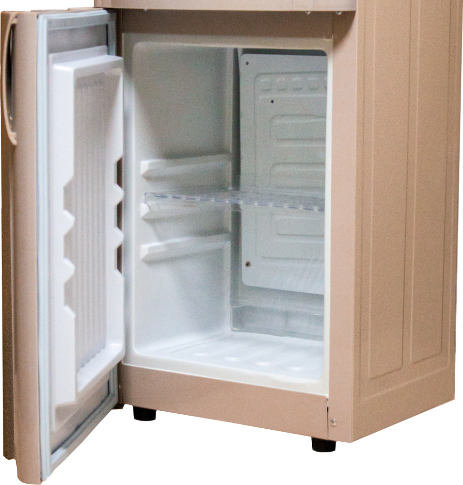 - Компрессор 130 Вт (в моделях, поставляемых нами с 2014 года, до этого чуть меньше, 120 Вт) тратит часть мощности на охлаждение холодильной камеры емкостью 20 литров, но оставшегося хватает на остужение 2 и более литров воды за час до температуры 7-10 ºС;