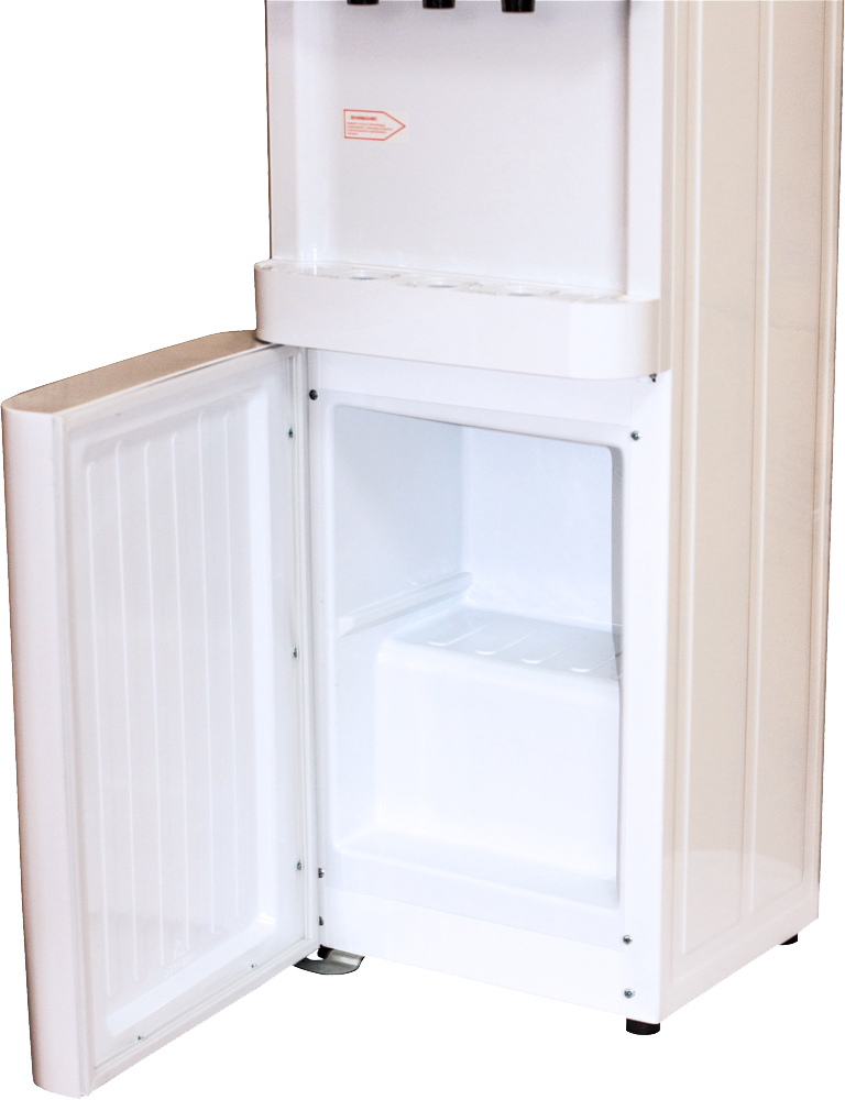 Напольный кулер для воды Aqua Work V908 с компрессорной системой охлаждения, стройным корпусом и миниатюрным встроенным шкафчиком.