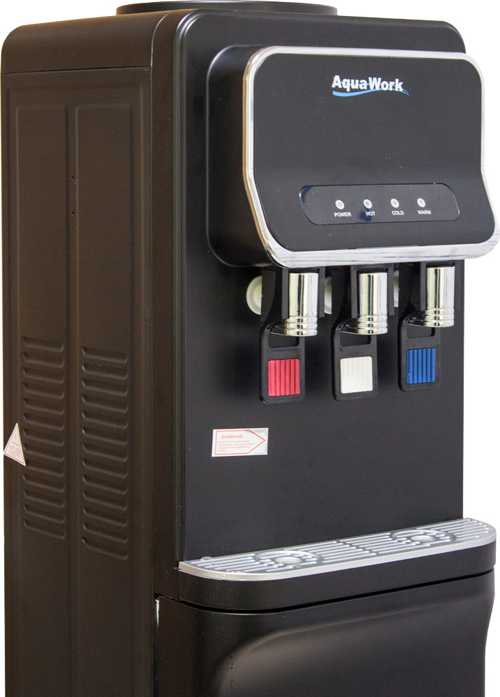 - 3 краника типа "нажим кружкой" для набора горячей, охлажденной и воды комнатной температуры.