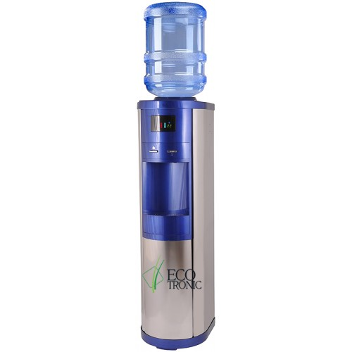 Напольный кулер с компрессорным охлаждением. Корпус нержавеющая сталь, передняя вставка СИНЯЯ. Краны нажим «кнопкой». VFD панель (индикация) показывает текущую температуру горячей и холодной воды. Кнопка горячей воды с защитой. Отдельные выключатели на нагрев и охлаждение на задней стенке.