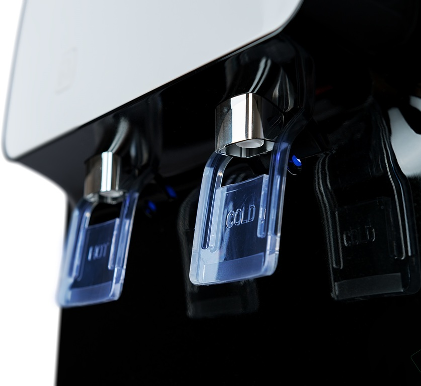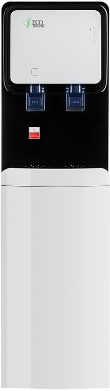 Кулер с нижней загрузкой бутыли и электронным охлаждением. Высокий удобный аппарат с оригинальным дизайном. Корпус белого цвета в сочетании с черными панелями. Голубая подсветка кранов, индикация режимов нагрева, охлаждения и готовности воды. Так же индикация отсутствия воды в бутыли. Краны «нажим кружкой», защита от детей. На боковых панелях ручки для перемещения/ перестановки аппарата. Выключатели нагрева и охлаждения воды. Защита от протечек.