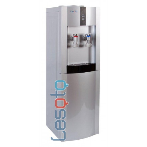 Напольный кулер с компрессорным типом охлаждения, серебристый, недорогой, стильный дизайн, краны - нажим кружкой.