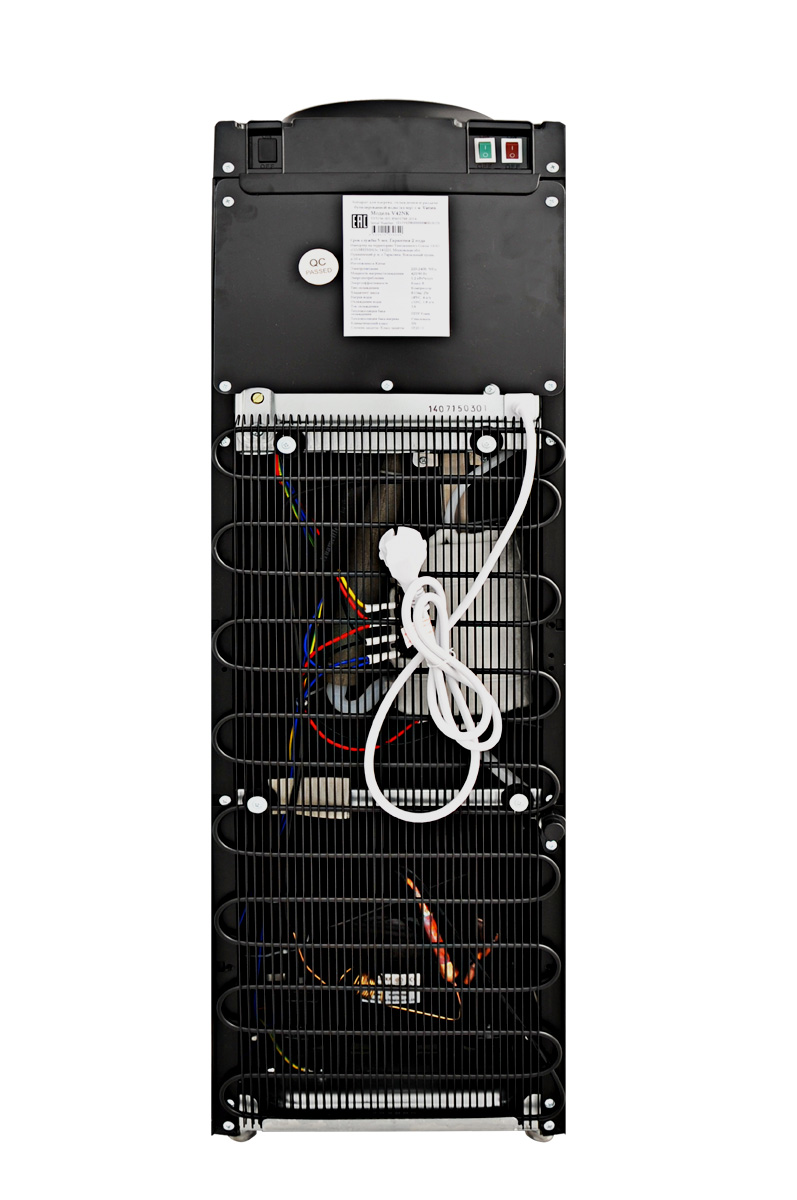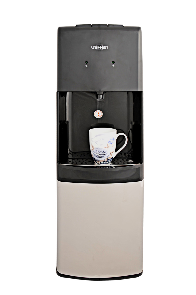 Компактный напольный кулер c компрессорным охлаждением, без шкафчика. Современный дизайн. Бутылеприёмник, верхняя и передняя панель изготовлены из высококачественного, устойчивого к ультрафиолету ABS пластика чёрного цвета, нижняя панель из нержавеющей стали, боковые панели из пластика чёрного цвета. Один кран, управление кнопками - горячая и холодная вода. Кнопка подачи горячей воды имеет "защиту от детей". Два LED индикатора (индикатор нагрева, индикатор охлаждения). Пригоден для эксплуатации в очень жарком климате - температура эксплуатации кулера от 10 до 38 градусов Цельсия.