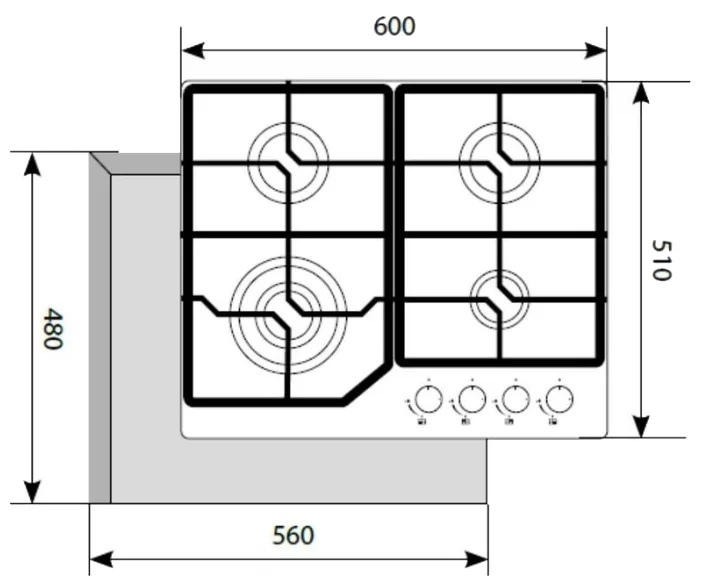 - Всего конфорок — 4