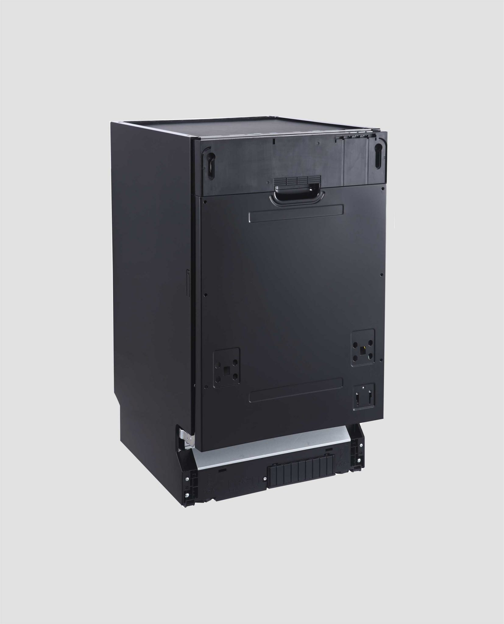 К группе узких напольных посудомоек относятся модели с шириной 45-50 см, но со стандартной высотой (ок. 85 см). Загрузка таких машин обычно не превышает девяти комплектов посуды.
