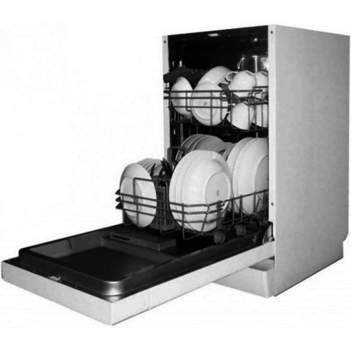 К группе узких напольных посудомоек относятся модели с шириной 45-50 см, но со стандартной высотой (ок. 85 см). Загрузка таких машин обычно не превышает девяти комплектов посуды.