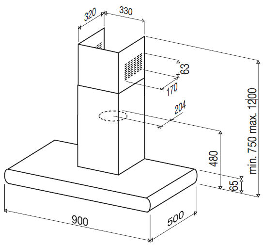 Данный параметр показывает, какое максимальное количество воздуха может пропустить через себя вытяжка в течение одного часа в режиме отвода воздуха. От правильного выбора пропускной способности зависит эффективность работы вытяжки. Оптимальный воздухообмен на кухне по санитарным нормам таков: за час весь объем воздуха в помещении должен смениться 10-12 раз. Поэтому для определения необходимой пропускной способности нужно подсчитать объем кухни (для большей точности можно вычесть из него объем кухонной мебели) и умножить его на 10 или 12. В итоге вы получите оптимальную производительность вытяжки для вашей кухни при условии, что вытяжной колпак будет подвешен на расстоянии 65-85 сантиметров от варочной поверхности. Например, для стандартной кухни площадью 10 квадратных метров и с потолком высотой 2.7 метра достаточно производительности 280-360 куб.м/час. Если же по каким-то причинам колпак придется установить выше 85 сантиметров от плиты, рекомендуется выбрать вытяжку большей производительности.