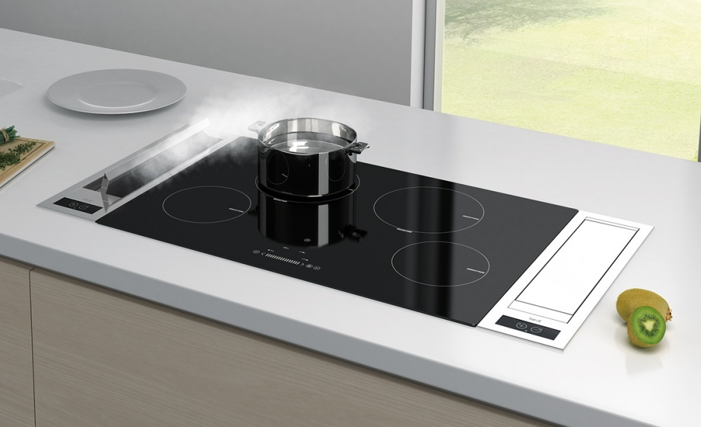 Встраиваемые вытяжки, как правило, работают в проточном режиме и требуют проводки воздуховода. Их главный плюс заключается том, что их можно почти полностью спрятать под столешницей или в кухонном шкафчике (см. "Тип встраивания"). Пользователю фактически остается видна только заборная часть вытяжки (то есть та, которая непосредственно поглощает воздух).