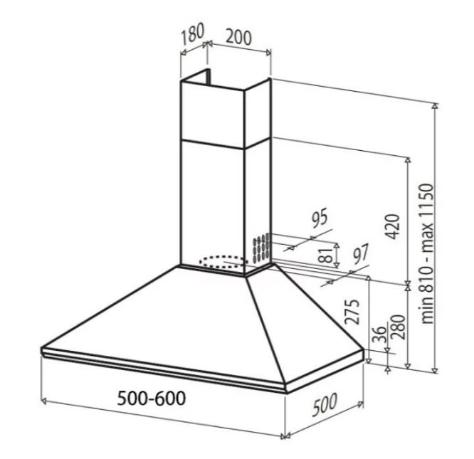 Определяющим параметром для размещения вытяжки на кухне является ширина ниши, куда предполагается ее установить. Следует учитывать, что размеры вытяжки должны соответствовать размерам рабочей поверхности, над которой она устанавливается. Вытяжка будет работать эффективно лишь при условии, что ее воздухоприемный зонт полностью закрывает плоскость плиты - тогда утечка загрязненного воздуха окажется минимальной. Если позволяет место, можно установить вытяжку несколько шире, чем рабочая поверхность плиты (например, для кухонной плиты шириной 60 см можно купить и вытяжку шириной 90 см). Но из-за экономии места большинство пользователей все же устанавливают вытяжки, по ширине равные плите.