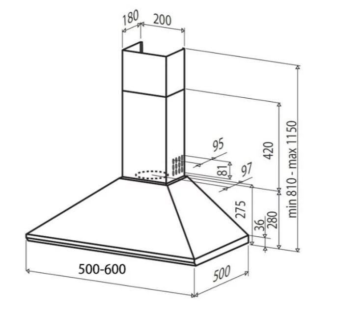 Определяющим параметром для размещения вытяжки на кухне является ширина ниши, куда предполагается ее установить. Следует учитывать, что размеры вытяжки должны соответствовать размерам рабочей поверхности, над которой она устанавливается. Вытяжка будет работать эффективно лишь при условии, что ее воздухоприемный зонт полностью закрывает плоскость плиты - тогда утечка загрязненного воздуха окажется минимальной. Если позволяет место, можно установить вытяжку несколько шире, чем рабочая поверхность плиты (например, для кухонной плиты шириной 60 см можно купить и вытяжку шириной 90 см). Но из-за экономии места большинство пользователей все же устанавливают вытяжки, по ширине равные плите.