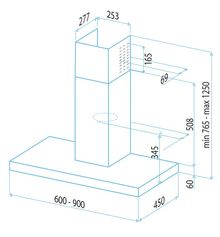 - Корпус вытяжки изготовлен из нержавеющей стали и закаленного стекла - материалы прочные, не подвержены коррозии, просты в уходе.