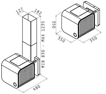 Back Aspiration Эти вытяжки имеют выход воздуха сверху и сзади. На этапе установки можно определить выход воздуха в зависимости от потребностей простым вращением на 90 градусов группы внутреннего двигателя. Классический выход сверху предназначается как для работы в режиме фильтрования, так и для работы в режиме всасывания с заметным дымоходом. Инновационный же выход сзади позволяет изделию работать в режиме всасывания без потребности в заметном дымоходе. В этом случае вытяжку необходимо подсоединить к отводящему трубопроводу, которых находится внутри стены, где будет установлена сама вытяжка.