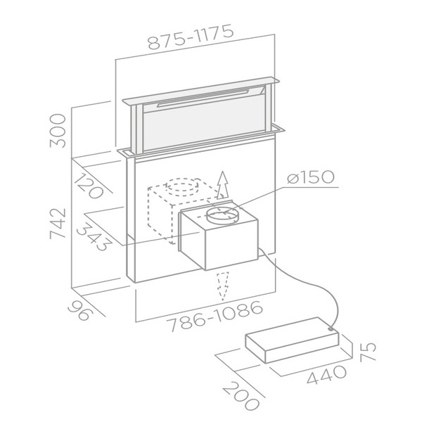 Встраиваемые вытяжки, как правило, работают в проточном режиме и требуют проводки воздуховода. Их главный плюс заключается том, что их можно почти полностью спрятать под столешницей или в кухонном шкафчике (см. "Тип встраивания"). Пользователю фактически остается видна только заборная часть вытяжки (то есть та, которая непосредственно поглощает воздух).
