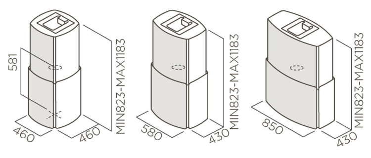 Каминные (купольные) вытяжки получили свое название из-за сходства конструкции с вытяжной системой обычных каминов. Воздух сначала попадает в корпус, выполненный в форме купола, и уходит в вентиляцию через воздуховод. Каминные вытяжки обычно имеют броский дизайн и дорогую отделку и нередко становятся центральным элементом интерьера. Поэтому они подбираются обычно на стадии оборудования кухонного гарнитура и техники. В зависимости от расположения различают несколько видов таких вытяжек (см. "Тип каминной вытяжки").