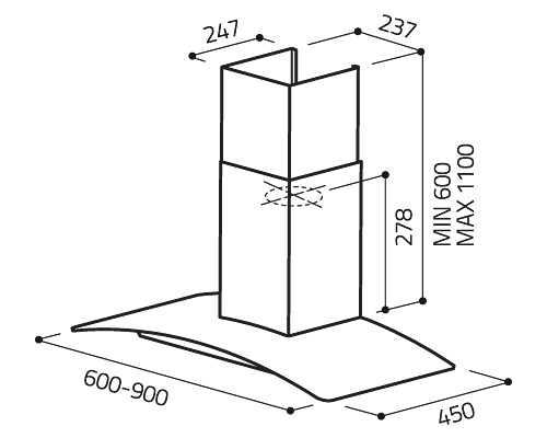 Определяющим параметром для размещения вытяжки на кухне является ширина ниши, куда предполагается ее установить. Следует учитывать, что размеры вытяжки должны соответствовать размерам рабочей поверхности, над которой она устанавливается. Вытяжка будет работать эффективно лишь при условии, что ее воздухоприемный зонт полностью закрывает плоскость плиты - тогда утечка загрязненного воздуха окажется минимальной. Если позволяет место, можно установить вытяжку несколько шире, чем рабочая поверхность плиты (например, для кухонной плиты шириной 60 см можно купить и вытяжку шириной 90 см). Но из-за экономии места большинство пользователей все же устанавливают вытяжки, по ширине равные плите.