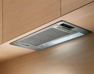 Подвесные вытяжки имеют рабочую площадь, равную варочной поверхности, над которой располагаются, и небольшую высоту, благодаря чему их иногда еще называют плоскими подвесными. Устанавливаются они под кухонным шкафчиком. Необходимо учесть высоту самого шкафа, чтобы нижняя часть корпуса вытяжки и соседних шкафчиков находились примерно на одной линии. Такие модели чаще всего относятся к бюджетному классу вытяжек.