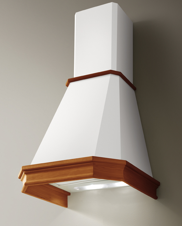 Каминные (купольные) вытяжки получили свое название из-за сходства конструкции с вытяжной системой обычных каминов. Воздух сначала попадает в корпус, выполненный в форме купола, и уходит в вентиляцию через воздуховод. Каминные вытяжки обычно имеют броский дизайн и дорогую отделку и нередко становятся центральным элементом интерьера. Поэтому они подбираются обычно на стадии оборудования кухонного гарнитура и техники. В зависимости от расположения различают несколько видов таких вытяжек (см. "Тип каминной вытяжки").