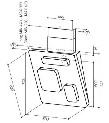 Back AspirationЭти вытяжки имеют выход воздуха сверху и сзади. На этапе установки можно определить выход воздуха в зависимости от потребностей простым вращением на 90 градусов группы внутреннего двигателя. Классических выход сверху предназначается как для работы в режиме фильтрования, так и для работы в режиме всасывания с заметным дымоходом. Инновационный же выход сзади позволяет изделию работать в режиме всасывания без потребности в заметном дымоходе. В этом случае вытяжку необходимо подсоединить к отводящему трубопроводу, который находится внутри стены, где будет установлена сама вытяжка.
