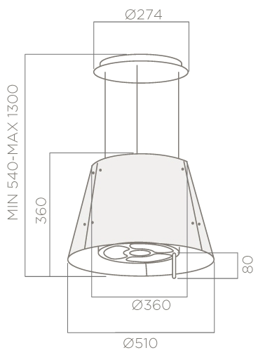 Intensitime Режим работы IntensiTime позволяет вытяжке Grace переключиться на максимальную мощность, которую может генерировать двигатель в течение 5 минут, для отвода паров и копоти особой интенсивности.