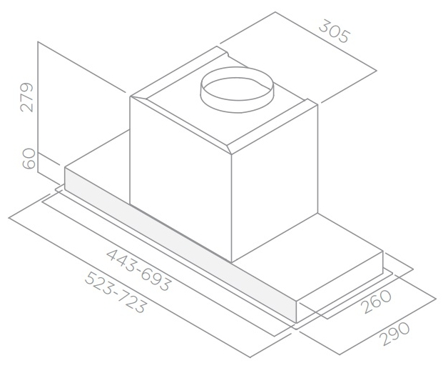 Встраиваемые вытяжки, как правило, работают в проточном режиме и требуют проводки воздуховода. Их главный плюс заключается том, что их можно почти полностью спрятать под столешницей или в кухонном шкафчике (см. "Тип встраивания"). Пользователю фактически остается видна только заборная часть вытяжки (то есть та, которая непосредственно поглощает воздух).