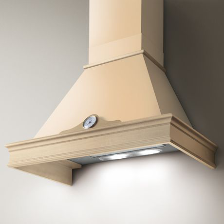 Каминные (купольные) вытяжки получили свое название из-за сходства конструкции с вытяжной системой обычных каминов. Воздух сначала попадает в корпус, выполненный в форме купола, и уходит в вентиляцию через воздуховод. Каминные вытяжки обычно имеют броский дизайн и дорогую отделку и нередко становятся центральным элементом интерьера. Поэтому они подбираются обычно на стадии оборудования кухонного гарнитура и техники. В зависимости от расположения различают несколько видов таких вытяжек (см. "Тип каминной вытяжки").