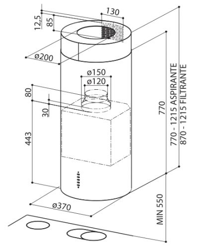 Характеристики вытяжки кухонной Faber CYLINDRA ISOLA GLOSS EG10 W A37