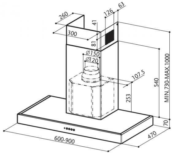 Определяющим параметром для размещения вытяжки на кухне является ширина ниши, куда предполагается ее установить. Следует учитывать, что размеры вытяжки должны соответствовать размерам рабочей поверхности, над которой она устанавливается. Вытяжка будет работать эффективно лишь при условии, что ее воздухоприемный зонт полностью закрывает плоскость плиты - тогда утечка загрязненного воздуха окажется минимальной. Если позволяет место, можно установить вытяжку несколько шире, чем рабочая поверхность плиты (например, для кухонной плиты шириной 60 см можно купить и вытяжку шириной 90 см). Но из-за экономии места большинство пользователей все же устанавливают вытяжки, по ширине равные плите.