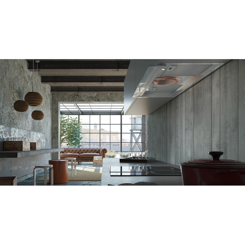 Faber ILMA X A90 — встраиваемая в подвесной шкаф вытяжка с системой Steam-Off. Модель не только втягивает воздух но и создает обратный воздушный поток, который ускоряет и более равномерно распределяет пар. Таким образом, данный принцип работы позволяет избежать образование конденсата как на поверхности корпуса устройства, так и на окружающей мебели. К дополнительным преимуществам следует отнести наличие подсветки варочной зоны и интенсивного режима для быстрого устранения копоти и испарений.