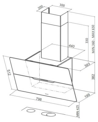 Определяющим параметром для размещения вытяжки на кухне является ширина ниши, куда предполагается ее установить. Следует учитывать, что размеры вытяжки должны соответствовать размерам рабочей поверхности, над которой она устанавливается. Вытяжка будет работать эффективно лишь при условии, что ее воздухоприемный зонт полностью закрывает плоскость плиты - тогда утечка загрязненного воздуха окажется минимальной. Если позволяет место, можно установить вытяжку несколько шире, чем рабочая поверхность плиты (например, для кухонной плиты шириной 60 см можно купить и вытяжку шириной 90 см). Но из-за экономии места большинство пользователей все же устанавливают вытяжки, по ширине равные плите.