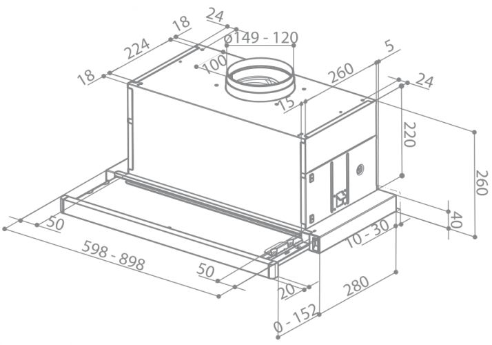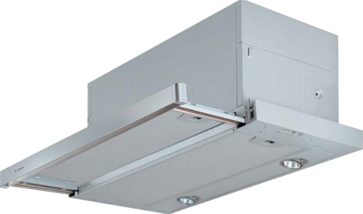 Встраиваемые вытяжки, как правило, работают в проточном режиме и требуют проводки воздуховода. Их главный плюс заключается том, что их можно почти полностью спрятать под столешницей или в кухонном шкафчике (см. "Тип встраивания"). Пользователю фактически остается видна только заборная часть вытяжки (то есть та, которая непосредственно поглощает воздух).