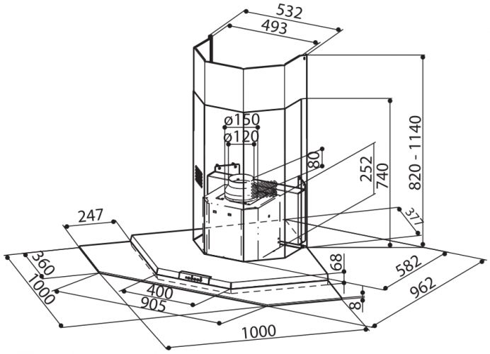 - Тип вытяжки — угловая