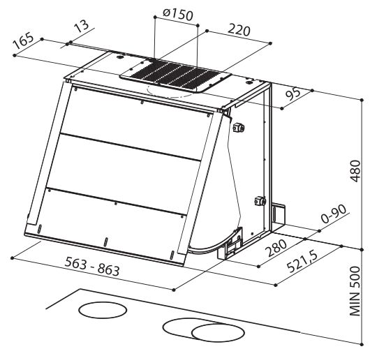 Определяющим параметром для размещения вытяжки на кухне является ширина ниши, куда предполагается ее установить. Следует учитывать, что размеры вытяжки должны соответствовать размерам рабочей поверхности, над которой она устанавливается. Вытяжка будет работать эффективно лишь при условии, что ее воздухоприемный зонт полностью закрывает плоскость плиты - тогда утечка загрязненного воздуха окажется минимальной. Если позволяет место, можно установить вытяжку несколько шире, чем рабочая поверхность плиты (например, для кухонной плиты шириной 60 см можно купить и вытяжку шириной 90 см). Но из-за экономии места большинство пользователей все же устанавливают вытяжки, по ширине равные плите.