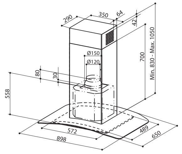 Описание вытяжки кухонной Faber TRATTO ISOLA/SP EG8 X/V A90